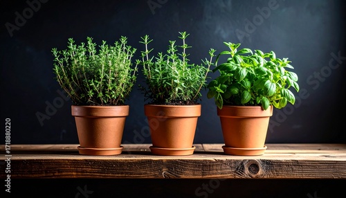 herb, plant, no people, photo, color image, basil, growth, horizontal, shelf, favor, france, kitchen, aromatic, dark background, decoration, design, green, house, background, cooking, natural, organic, table, potted plants, gardening, graphic, group, indoor, living room, photo, row, softness, three, vertical, vibrant, visual, copy space, fragrance, herbal, life, eatery, rustic, scented, still, sunlight