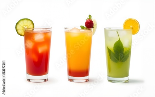 Three refreshing cocktails isolated on white background. High quality