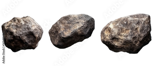 Three Rocks With Rough Textures Isolated On Transparent Background