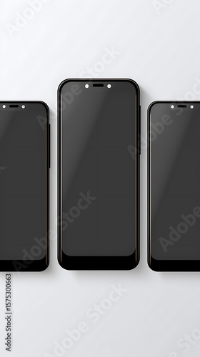 Three sleek black smartphones with gold trim arranged on a clean white background