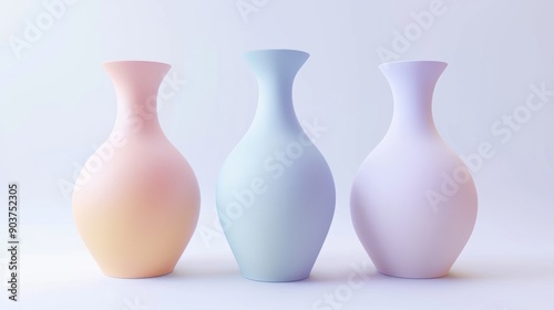Three soft pastel colored vases rest on a white background, creating a serene and harmonious visual experience