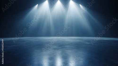 light, dark, floor, spotlight, beam, ray, illumination, background, stage, studio, scene, texture, abstract, design, space, empty, blank, surface, shadow, blue, night, glow, bright, pattern, shiny, smooth, cold, dramatic, moody, mysterious, power, sharpened, energy, contrast, gradient, depth, effect, environment
