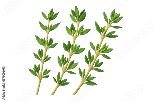 Three sprigs of fresh thyme, isolated on a transparent background, ready to add flavor to culinary creations