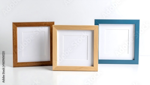 frame, square, picture, wooden, colours, empty, white, background, photo, display, decoration, home, interior, design, neutral, light, simple, modern, minimalist, empty space, light brown, teal, blue