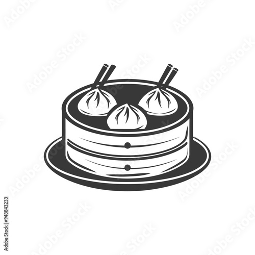bun, steamed, bamboo, steamer, chopstick, chinese, food, asian, cookery, dim, sum, dumpling, round, white, black, icon, illustration, graphic, design, eatery, menu, traditional, culture, delicious