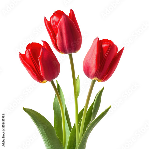red, tulip, flower, bloom, blossom, spring, vibrant, colours, flower petals, leaf, green, stem, bouquet, trio, group, closeup, macro, photo, image, picture, botanical, floral, nature, beauty, elegance, romance, love, passion, affection, symbol, gift, garden, plant, horticulture, flora, bright, high-coloured, rich, intense, deep, scarlet, crimson, velveting, smooth, delicate, graceful, stunning, magnificent, impressive