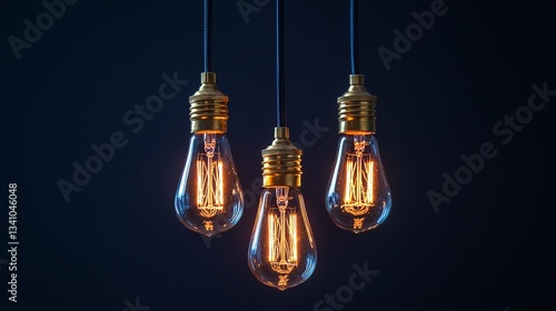 Three Vintage Edison Bulbs Hanging Dark Background Illuminated Lightbulbs