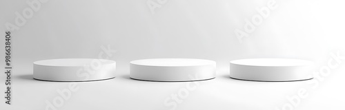 pedestal, dais, platform, display, product, stage, white, round, circle, three, set, blank, empty, studio, background, minimal, simple, modern, clean, geometric, abstract, shape, isolated, photo, commercial, advertising, branding, presentation, design, creative