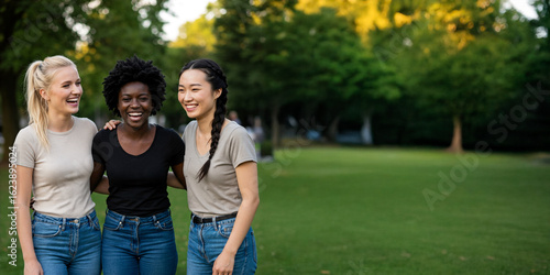 copy space, african, african american, asian, asian american, authentic, balance, black, bonding, carefree, casual attire, casual clothes, caucasian, clothing, community, connection, diversity, female, freedom, friends, friendship, fun, girl, grass, group, happiness, harmony, inclusion, jean, joy, laughter, leisure, multicultural, nature, outdoors, park, peace, positivity, relaxed, smiling, sunlight, support, togetherness, tree, oneness, weekend, white, woman, woman