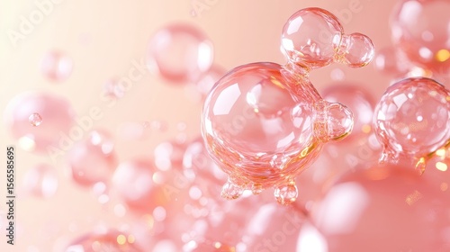 Three-Dimensional Collagen Molecule and Vitamin Illustration on a Soft Color Background for Skin Science and Aesthetic Advertising