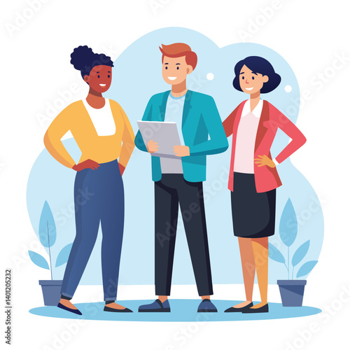 three-diverse-business-partners-standing-and-discus vector image on white background