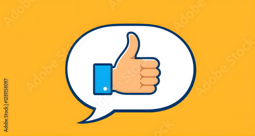 thumb up, hand gesture, speech bubble, approval, like, agreements, success, good, ok, yes, hand, communication, feedback, icon, vector, illustration, graphic, symbol, signs, support, recommendation, choice, vote, agree, confirm, accept, satisfied, happy, excellent, best, quality, service, client, client, business, marketing, online, cyberspace, web, design, element, isolated, background, yellow, white, blue, outline