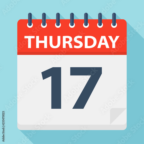 Thursday 17 - Calendar Icon. Vector illustration of week day paper leaf.