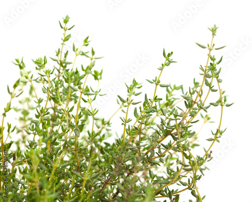 isolated, isolated on white, cut-out, cut-out, closeup, closeup, on white, nobody, food, nourishment, alimentary, ingredient, calorie, calorie, nutrient, evergreen, herb, culinary, medicative, ornamental, thyme, genus, thymus, component, plant, small, growing, leaf, steam