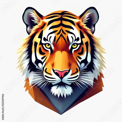 Tiger low poly illustration on white background. Triangular geometric polygonal wild animal design. Colorful tiger head with orange, black stripes. Modern abstract art graphic.