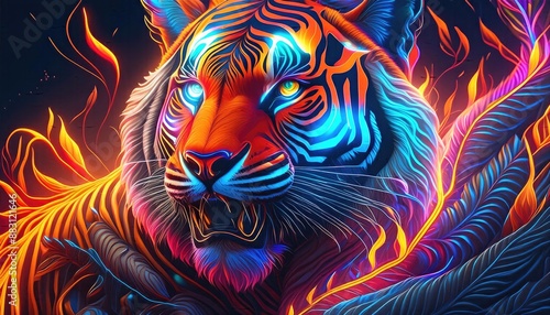 Tiger tattoo art, tiger neon lights - tattoo art, fantasy effect with fire