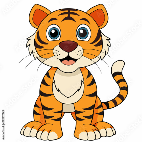 tiger, animal, cartoon, cat, vector, illustration, wild, mammal, baby animal, wildlife, zoo, character, cute, baby, fun, striped, isolated, nature, orange, lion, predator, safari, felino, art, jungle
