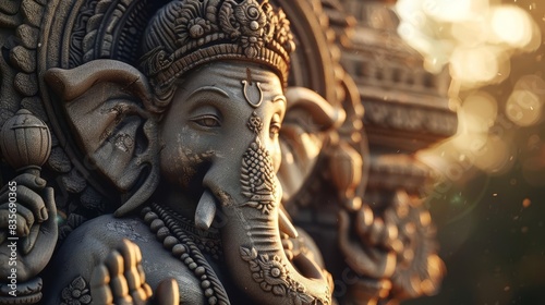 tilt, angle, view, carve, ganesh, deity, stone, statue, detail, posture, outline, presence, design, figure, balance, sharpened, contrast, natural, finesse, idol, image, background, structure, expression, icon, motif, artwork, aura