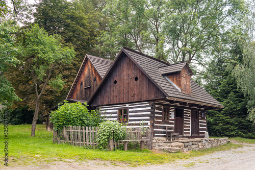 timbered house - czech traditional wooden house at Vesely Kopec, Bohemian-Moravian Highlands, Czech republic