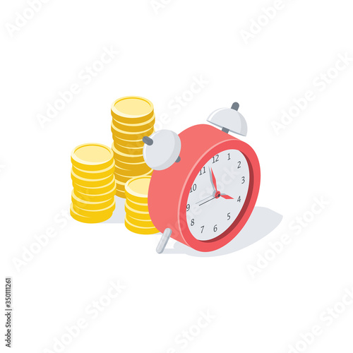 Time clock money coins. Vector 3d isometric, color web icon, new flat style. Creative illustration design, isolated graphic idea for infographics.