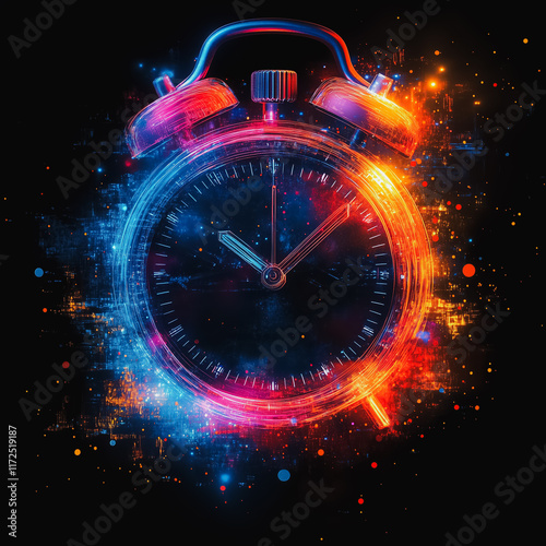 time, clock, alarmclock, urgency, future, futuristic, technology, digital, countdown, time management, deadline, productivity, digital artwork, abstract, dynamic, energy, motion, glowing, bright, colourful, nebula, space, astronomy, science, concept, art, design, illustration, background, wallpaper, graphic, pattern, texture, high-coloured, sparkle, cosmic, galaxy, universe, speed, fast, rush, movement