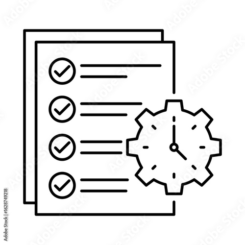 Time Management Icon. Clock and Task List, Prioritizing Time, Productivity, and Organization. Outline Vector Icon. Editable Stroke.