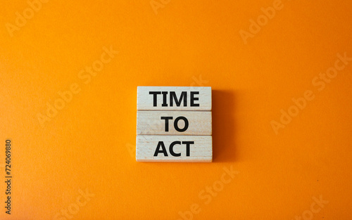 Time to Act symbol. Wooden blocks with words Time to Act. Beautiful orange background. Business and Time to Act concept. Copy space.
