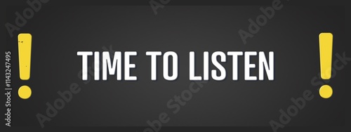 Time to listen. A blackboard with white text. Illustration with grunge text style.