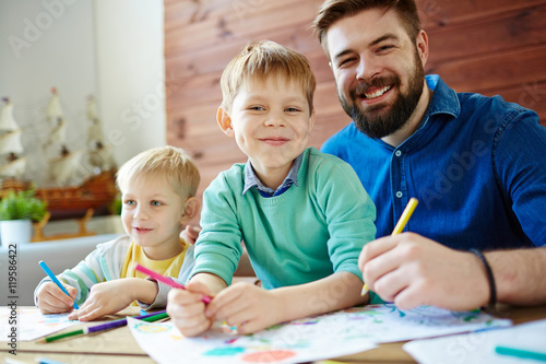 children, childhood, man, people, adult, family, father, son, brother, eltern, portrait, drawing, together, teamwork, painting, art, children, creative, creativity, education, friendship, learn, smiling, cheerful, indoor