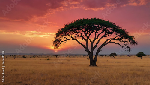acacia, tree, savanna, sunset, sky, pink, purple, orange, glow, sun, horizon, landscape, nature, serene, iconic, african, dry, grass, solitary, dramatic, vibrant, dusk, twilight, silhouette, scenery, outdoors, environment, wild, peaceful, majestic, timeless, composition, photo, beauty, tranquil, panorama, spectacle, sunrise, tree, cloud, evening, safari, rural, light, beautiful, field, morning