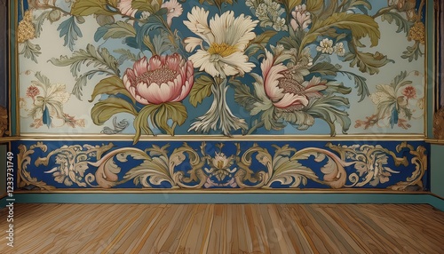 Timeless Elegance Vintage Floral Wallpaper in a Rustic Setting, Showcasing Rich Colors and Textures of the Past