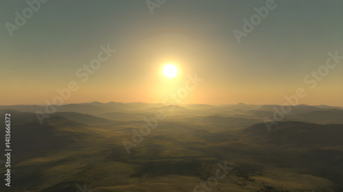 Timeless Tranquility Under the Radiance of the Midday Sun with Clear Skies and Illuminated Landscape