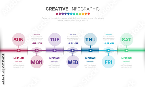 Timeline business for 7 day, 7 options, Timeline infographics design vector and Presentation business can be used for Business concept with 7steps or processes.