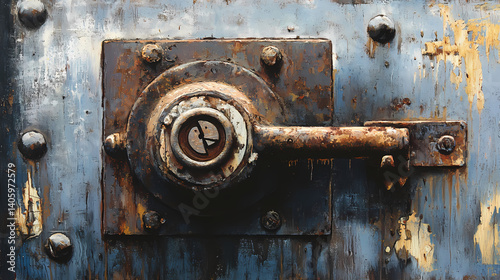 Timeworn metal, rusty lock, echoes a forgotten past. Echoed Metal. Illustration