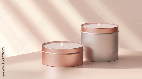 Tin candle minimalist mockup cylindrical container silver metal matte and shadow light wall