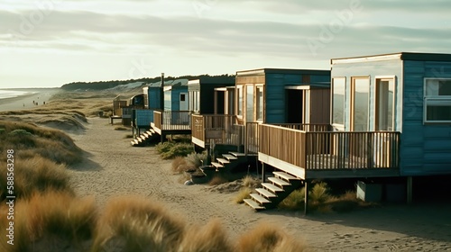 container, house, tiny, home, glamourous, camping, architecture, outdoors, sand, nature, wood, material, building, exterior, summer, modern, industry, construction, built, structure, blue, dusk, transportation, ownership, landscape, site, roof, sunlight, ai, generative, made, out, used, shipping, wooden, external, cladding