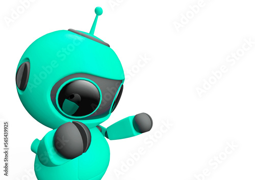 tiny robot is looking down in white background with copy space