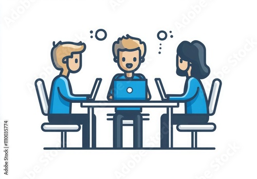 "Tiny Workers and Icons Showcasing Teamwork Around a Computer"
