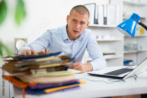 sleepy, workplace, unhappy, displeasure, manager, european, 1, norwegian, indoor, french, laptop, man, italian, caucasian, planning, correspondence, upset, male, occupation, document, pile, swede, portrait, table, german, company, office, sitting, working, professional, competence, activity, american, bill, 40s, computer, worried