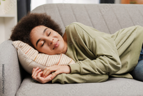 sleeping, woman, dreaming, room, comfort, sleepy, sofa, home, pillow, portrait, smiling, resting, lying, closed, eye, wellness, african american, day, attractive, lifestyle, relaxation, young, concept, soft, comfortable, diversity, background, enjoying, adult, couch, cheerful, indoor, relaxing, pretty, ethnicity, nice, leisure, female, beautiful, authentic, person, peaceful, cute, model, people, casual attire