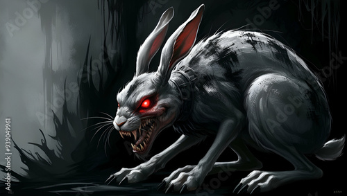 eerie, demonic, giant, rabbit, supernatural, creepy, dark, ominous, monstrous, creature, fear, horror, nightmare, mythology, fantasy, evil, bizarre, strange, gothic, grotesque, terrifying, distorted, paranormal, mystery