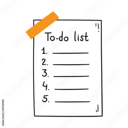 To do list. Hand drawn paper paper sheet is glued with tape. Memo list. Vector illustration isolated on white background.