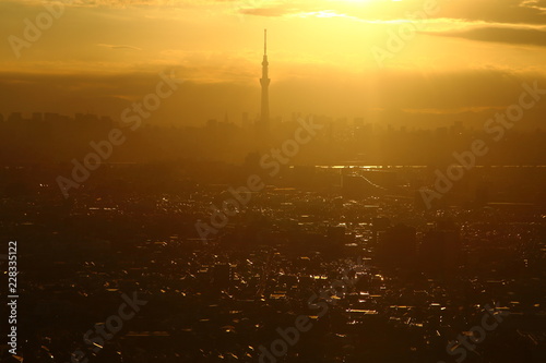 Tokyo city skyline at sunset in Tokyo, Japan.