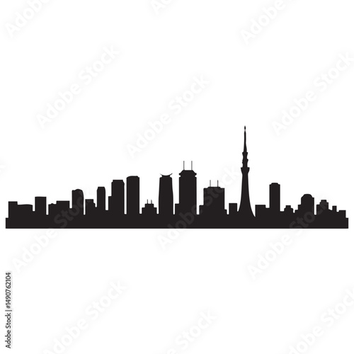 Tokyo city skyline horizontal banner. Black of Tokyo city, Japan. Vector template for your design. Vector black silhouette. with white background