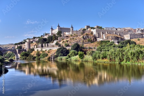 river, sky, summer, panorama, toledo, spain, town, old, view, historic, architecture, ancient, europa, landmark, spanish, city, castile, travel, landscape, castle, tour tourism, european, hill, castile, city landscape, mediaeval, historical, skyline, heritage, bridge, alcantara, building, traditional, culture, stone, history, tower, famous, citadel, destination, village