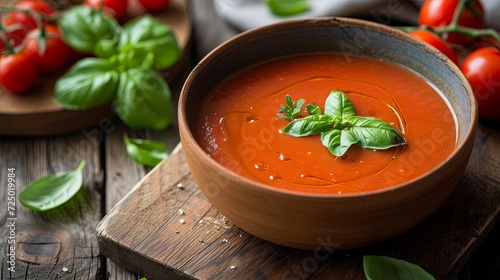 tomatoes, basil, soup, food, vegetable, bowl, meal, red, herb, lunch, vegetarian, cream, delicious, dinner, hot, healthy, tomato soup, fresh, vegan, dish, tasty, cooking, traditional, horizontal, cookery, creamy, no people, closeup, vegetarian food
