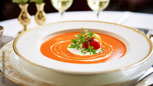 Tomato cream soup in a restaurant, English countryside exquisite cuisine menu, culinary art food and fine dining experience