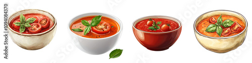 tomatoes, soup, isolated, white, background, delicious, warm, meal, tasty, fresh, creamy, comforting, dish, healthy, savoury, favor, red, bowl, comfort, liquid, set, cut-out, mix, collection