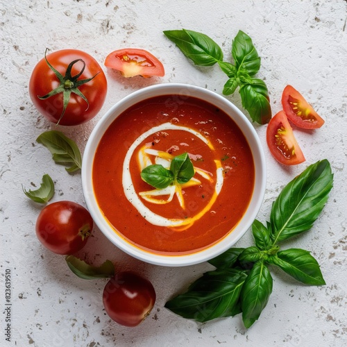 soup, tomatoes, food, vegetable, red, bowl, meal, dinner, vegetarian, healthy, basil, lunch, dish, fresh, gazpacho, white, green, hot, epicure, tomato soup, cream, plate, cookery, ukrainian, parsley, traditional, meat