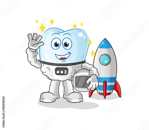 tooth astronaut waving character. cartoon mascot vector